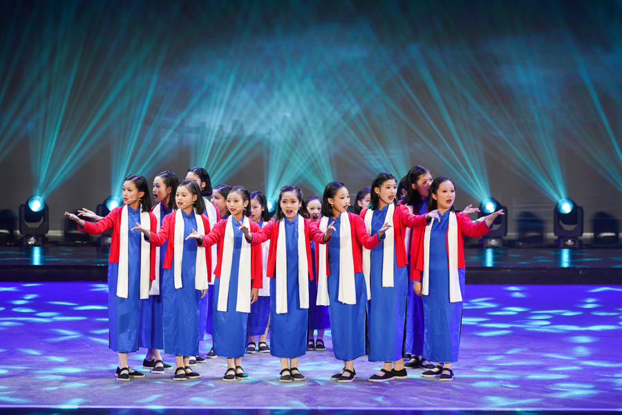 浦东新区华高小学五年级学生戴佳蕙和四年级学生刘濯濯都是从零起步,入学后参加了学校的戏曲社学锡剧,每天课后服务时间4点半到5点半进行专业训练,周六不定期由名师线上指导、逐一点评。小伙伴们带来了原创锡剧作品《长征》,以红军长征历程为线索,巧妙融合了锡剧的婉转唱腔与程式动作,生动再现了红军长征的英雄气概与战士间的深厚情谊。